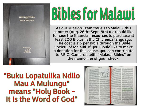 The Lord Jesus Christ has commanded the preaching of the Gospel to all nations. Therefore, First Baptist Cameron is striving to become a missional church.